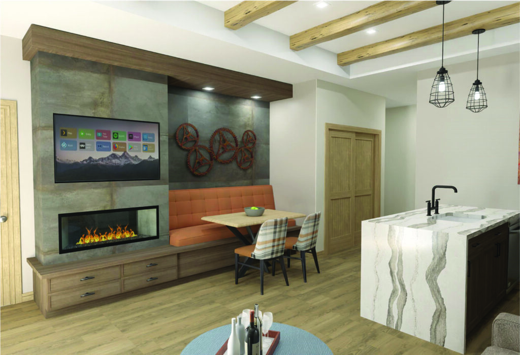 In one living room renovation, limited space made it seemingly impossible to accommodate both adequate storage and a separate dining area. HRD’s solution integrated drawers into the base of the fireplace for storage while creating a built-in dining booth that maximized seating capacity while minimizing spatial footprint.